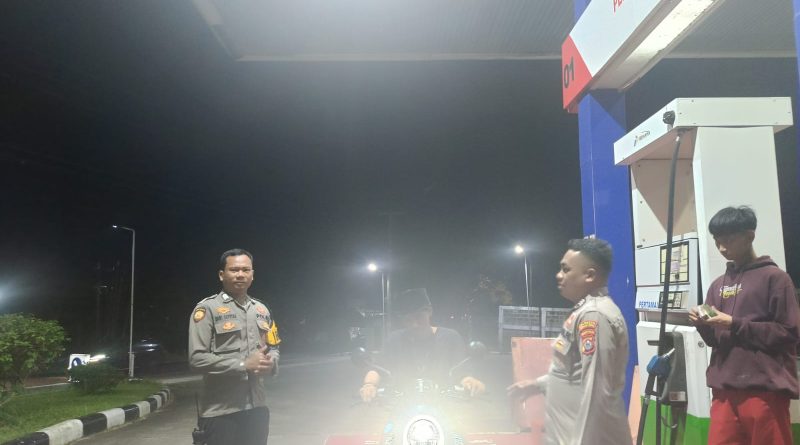 POLRESTA SERKOT_ Anggota Polsek Baros Polresta Serkot Aipda Hari bersama anggota lain nya memberi Himbauan Kamtibmas Kepada Karyawan SPBU Kp.