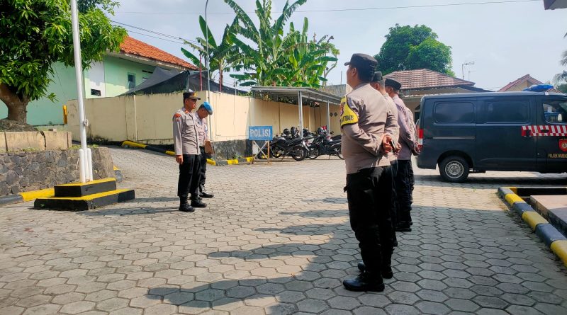 POLRESTA SERKOT | Kanit Binmas Waringinkurung Iptu Juwedi memimpin langsung kegiatan apel pagi yang dilaksanakan di halaman Mako Polsek Waringinkurung, Rabu (22/04/2026).