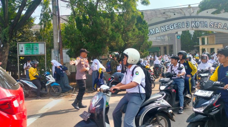 Polsek Taktakan Polresta Serkot Pastikan Kelancaran Arus Kendaraan di SMAN 3 Kota Serang Saat Aktivitas Belajar Mengajar Usai