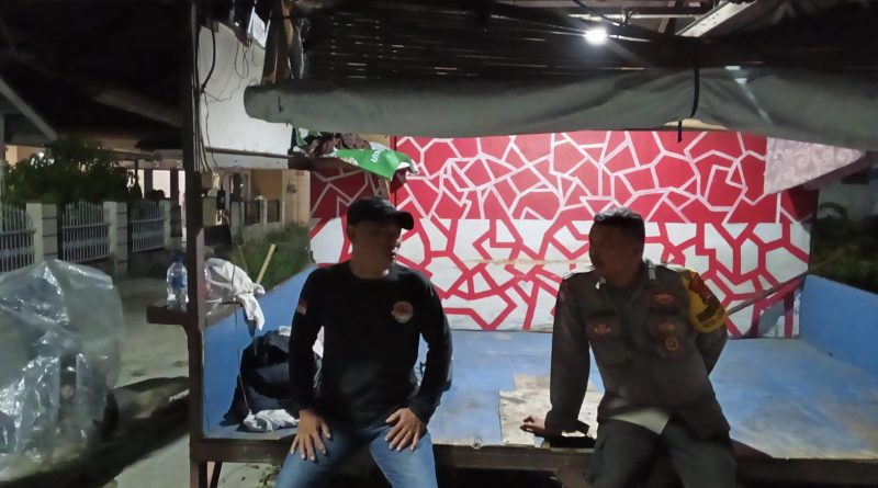 Personel piket polsek kramatwatu Polresta Serkot Polda Banten melaksanakan patroli ke pos ronda di desa Pelamunan