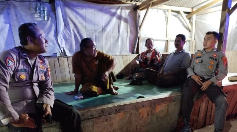 Aipda Jajat dan Brigpol Rohman ke warga Sat kamling sampaikan pesan kamtibmas.