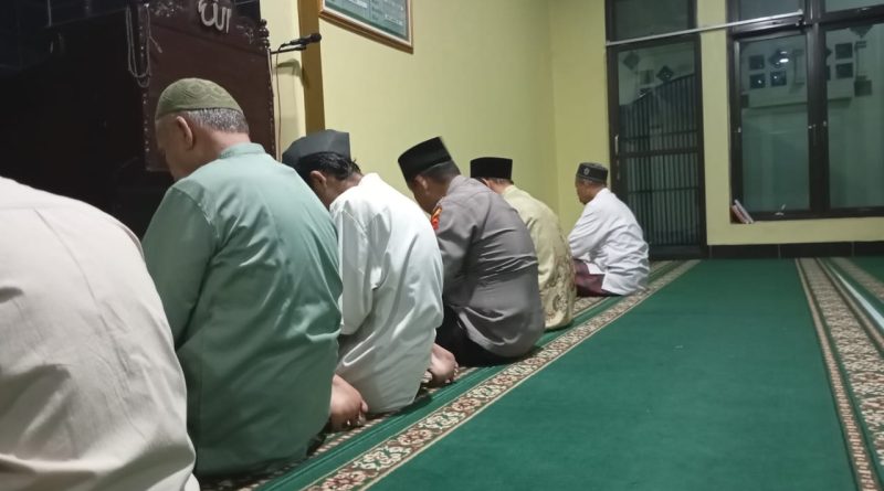 DiPolsek Cipocok Jaya Polresta Serkot melalui Bhabinkamtibmas Bripka Ari Mustakim lakukan sholat subuh berjamaah di Masjid Jami Baiturrahma menyampaikan himbauan kepada warga masyarakat.