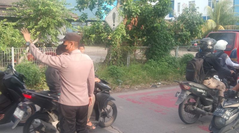 Petugas polsek kramatwatu Polresta Serkot melaksanakan pengaturan arus lalu lintas