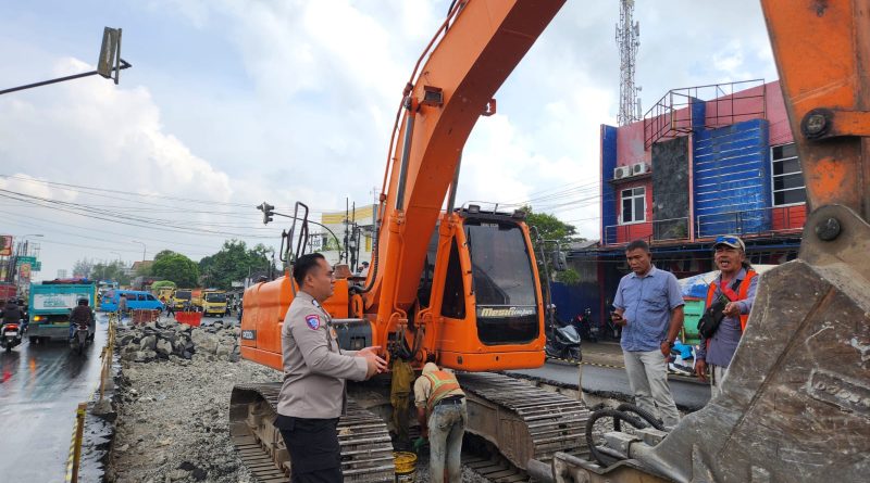 POLRESTA SERKOT_Kanit Intelkam Polsek Kramatwatu Iptu S.Sihotang bersama anggota piket melaksanakan pengecekan pengerjaan perbaikan jalan di simpang 4 serdang desa serdang kec.kramatwatu pada, Jum’at, 01/05/2026.